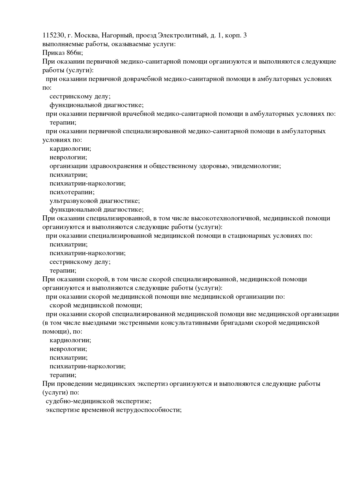 Услуги, оказываемые врачом на дому